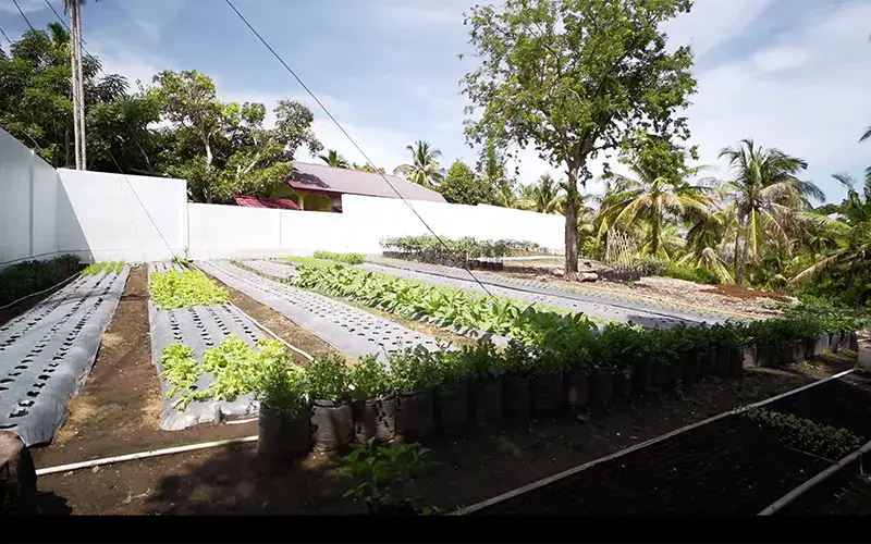 Yes, we are growing a variety of organically grown fruit and veggies which we supply to the resto kitchen and bar. Examples of our produce are Eggplant, Tomatoes, Spinach, Bok choi, String beans, Corn, Cucumbers, Salad leaves, Parsley, Scallions, Papaya, Watermelon, Melon, and Chillies. Also, some fresh herbs like ginger, basil, lemon grass, lemon leaves, and curry leaves.