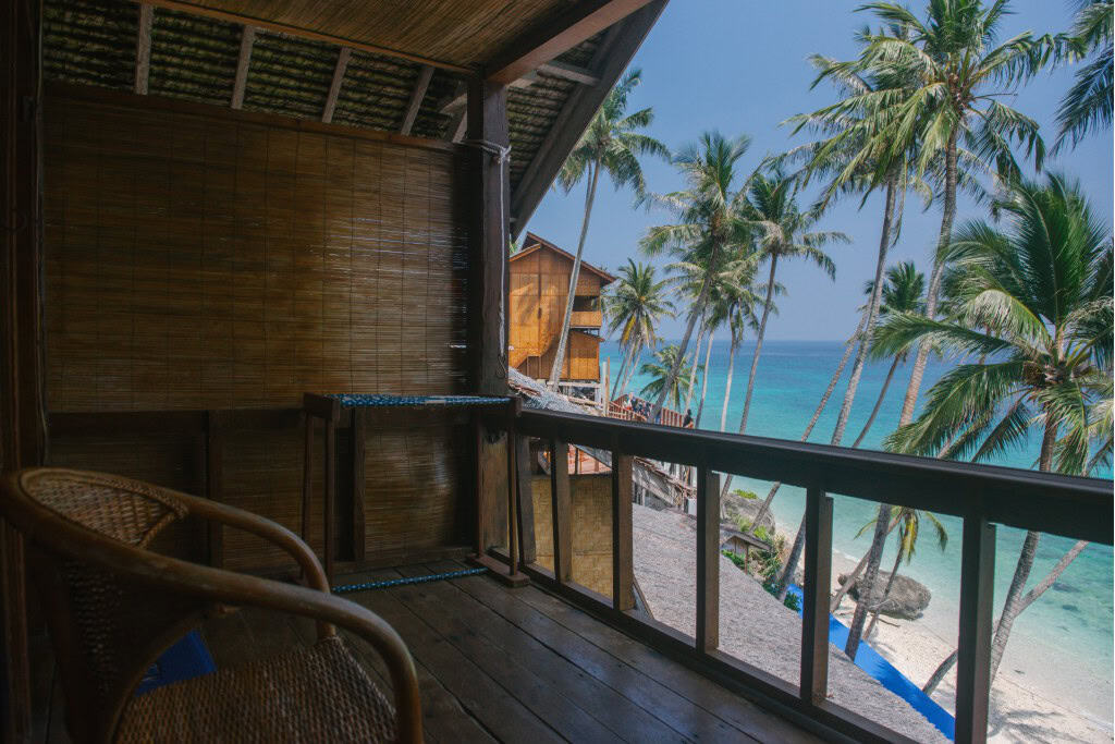 We offer five Sea-view bungalows that have the same facilities as the Beachfront Bungalows. Of these A13 is a single level structure situated on the right-hand side of the resto building. The other 4 bungalows are duplex structures, with one bungalow on the top floor and one on the bottom floor, one on top of the other. Bungalows A6 and A7 are the original structures but A8 and A9 were recently replaced with more permanent structures, but the exterior, design and facilities still the same. All these rooms are elevated with great sea-views.